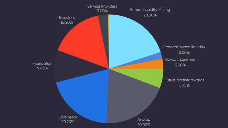- 社区50.75%(分为早期参与者空投20%与流动性相关激励30.75%)