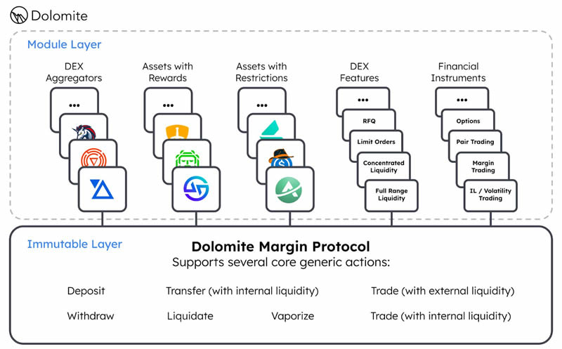 Dolomite是一个全功能、模块化的DeFi协议,核心定位为一站式货币市场(借贷平台),同时整合了现货交易、保证金交易、资产管理与策略部署等功能,支持超过一千种资产。