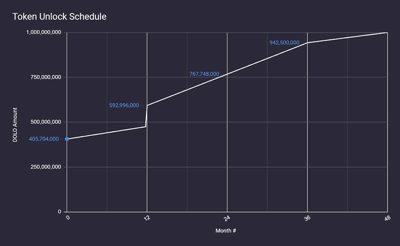 - $DOLO初始总量10亿颗(四年后将转为3%的通胀模型)