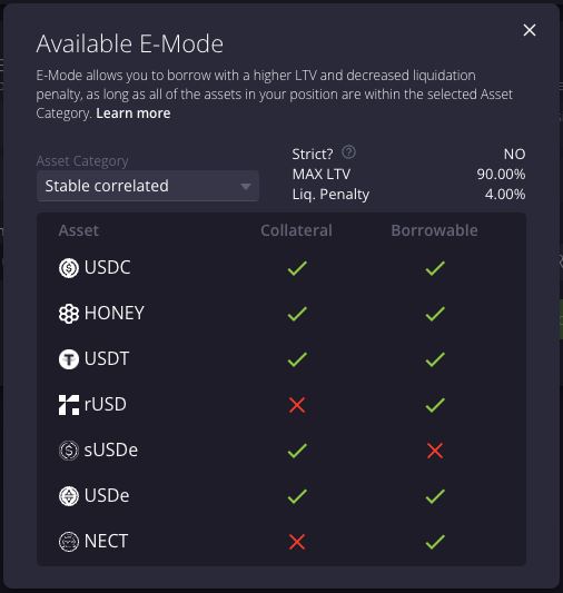 5、E Mode杠杆优化(目前仅在Berachain支持)