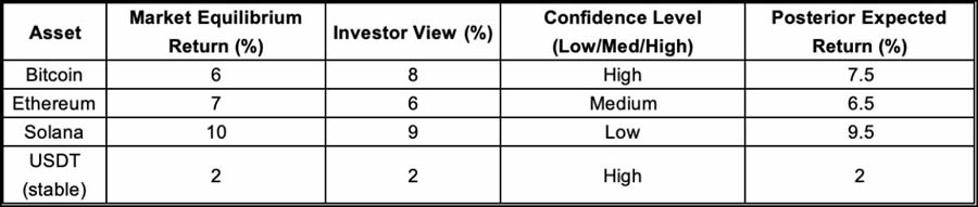 该模型的主要优势在于能够将投资者的见解(如市场前景或情绪)与市场数据相结合。这种平衡创造了更加现实和稳定的预期收益,这在快速变化的加密货币市场中是一个关键因素。