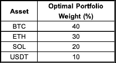 - USDT提供稳定性,尽管其预期收益率较低,但降低了整体风险。