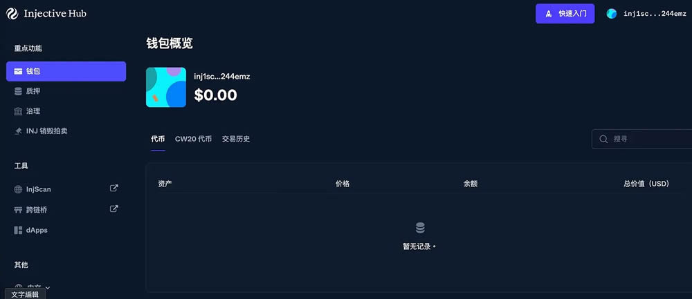 Injective Hub(以下简称Hub)是Injective 官方的Web 门户,提供使用者友善的仪表板来管理其帐户和资产。