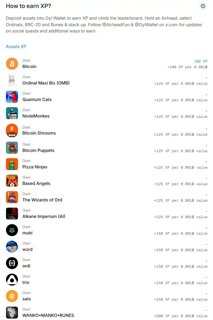 这个钱包目前在主推一个叫 Alkanes 的比特币资产协议,可以算是目前比特币生态中最活跃的新协议。Oyl 钱包内有 XP 系统,存入比特币和相关比特币生态资产就可以获取 XP。这个 XP 之后可能和来自官方的,同时也是 Alkanes 协议第一个部署的代币 $DIESEL 的空投有关。