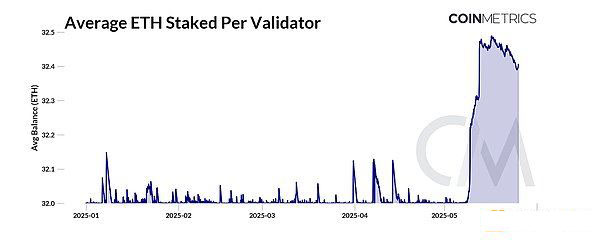 目前,每个验证者的平均质押量从约 32 ETH 稍微上升至约32.4 ETH,但大多数验证者的有效质押余额仍低于 128 ETH。随着更多节点运营者合并其质押以提高回报,我们可以预期这一平均数将继续上升,同时验证者质押额的分布结构也将发生改变。