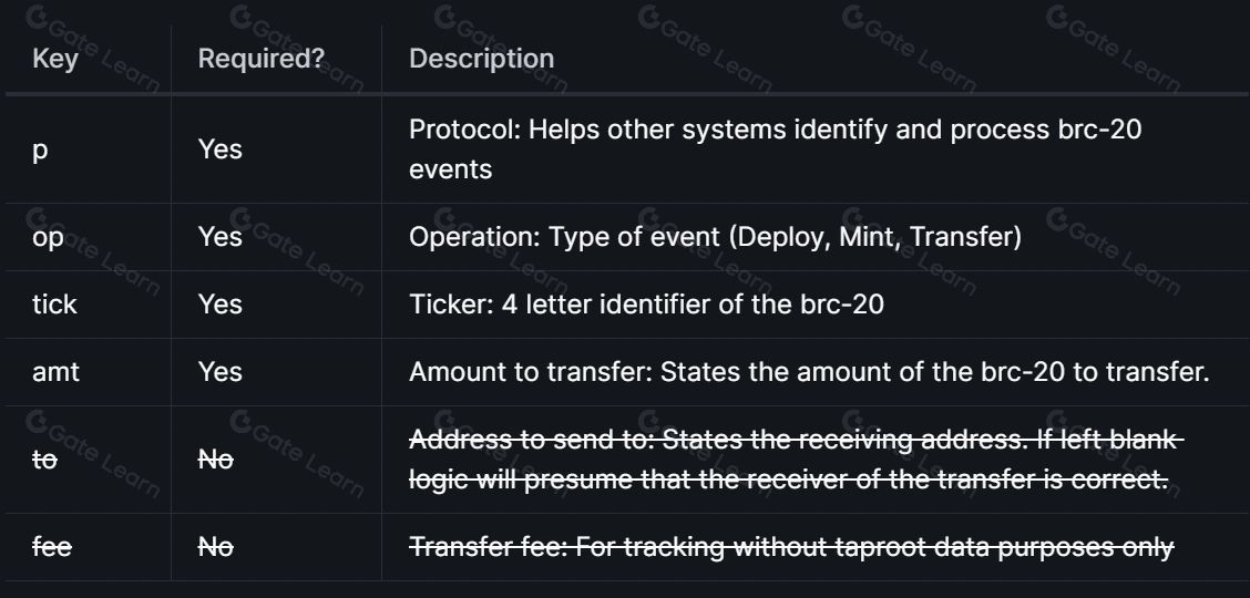 虽然使用Unisat等工具铸造时,用户只需要基本的名称数量即可铸造,但实际的代码却大有不同。BRC-20中规范了各种不同的字段,如下图所示:
