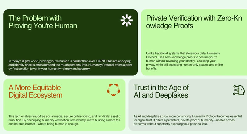 Humanity Protocol正在重新定义我们在数字时代如何证明自己是人类。通过将尖端的零知识密码学与生物识别技术相结合,它为Web3世界提供了一个既可扩展又优先考虑隐私的身份基础。
