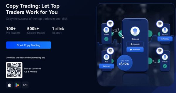 如果想获得全面的交易体验,你可以下载Margex应用,它包含所有产品。如果你喜欢复制交易,可以下载复制交易应用。它同样强大,能存储资产,同时提供复制专业人士交易的工具。