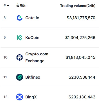 根据CoinMarketCap的数据,Crypto.com的现货交易量排名第10,合约交易量排名第15,是美国市场上最大的交易所之一。