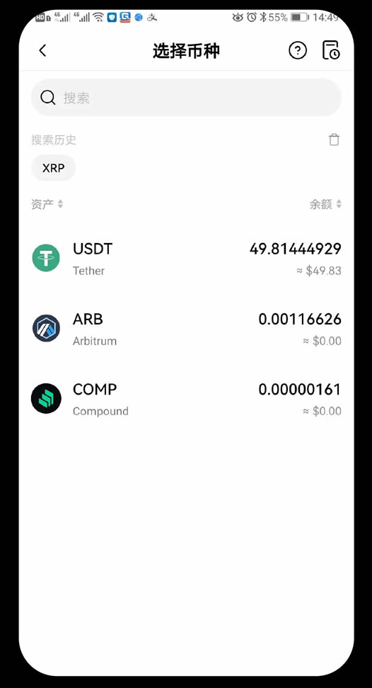 2. 在钱包页面选择已有币种,就能直接看到对应的地址和网络。