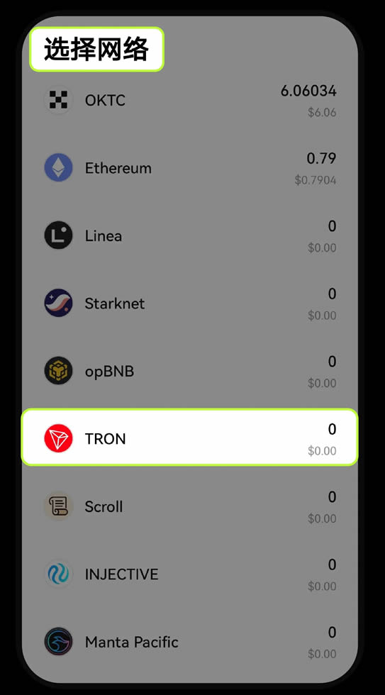 要从其他钱包或平台接收资产,得先确认发送方用的网络。比如对方用TRON网络转USDT,你就在OKX钱包点【Web3钱包】→【接收】,选USDT币种后,在选网络页面选TRON网络,就能看到对应的二维码和接收地址。