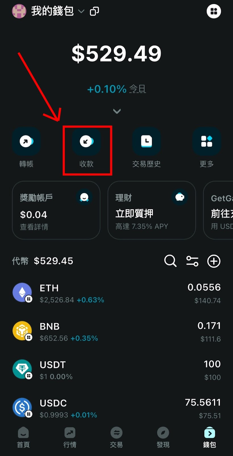 Step 1:打开Bitget Wallet,点选"收款"