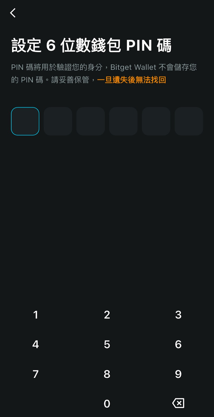 系统会要求用户设定一个6位数的安全PIN码,这个密码仅用于身份验证。请妥善保管,因为Bitget Wallet不会储存您的密码,一旦遗失将无法找回。