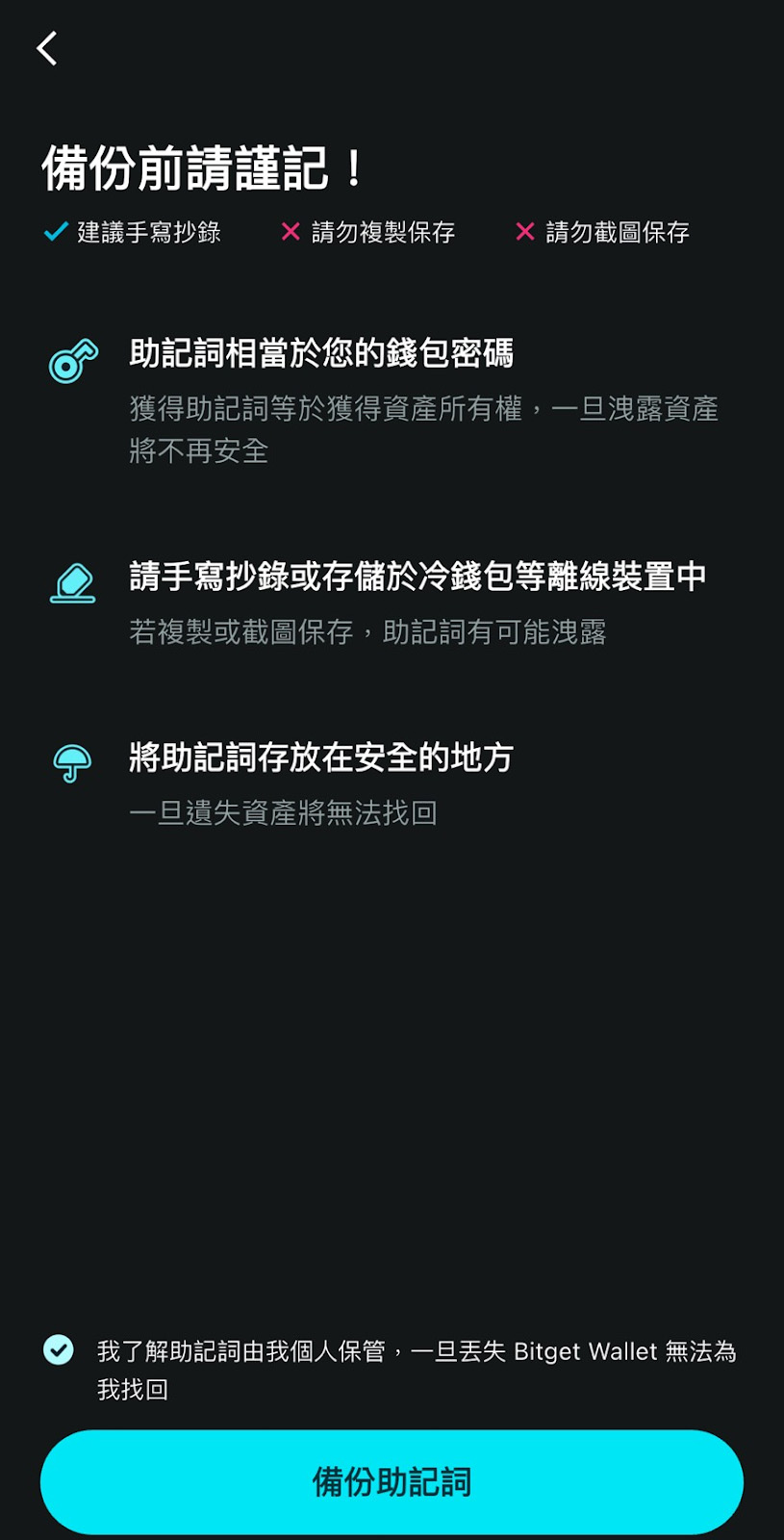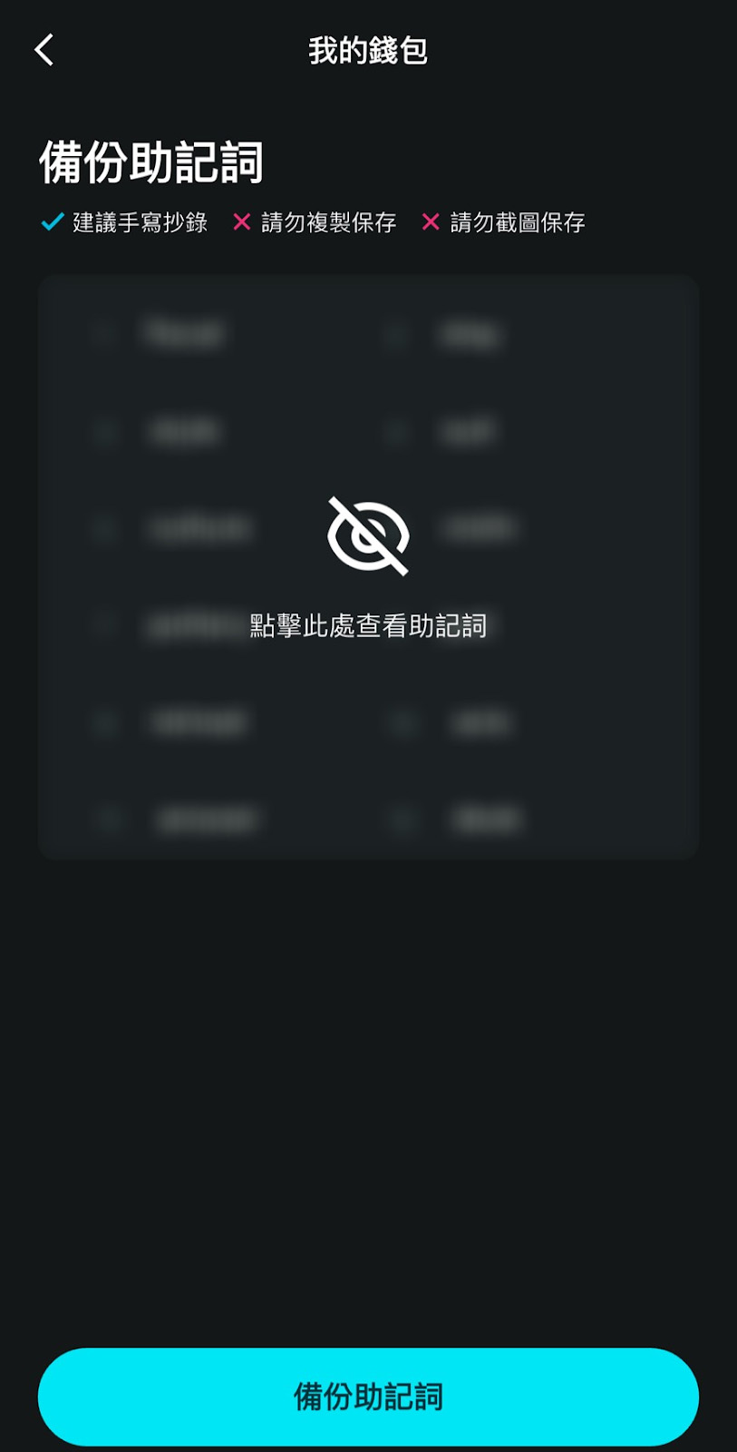 - 请勿向他人透露助记词内容