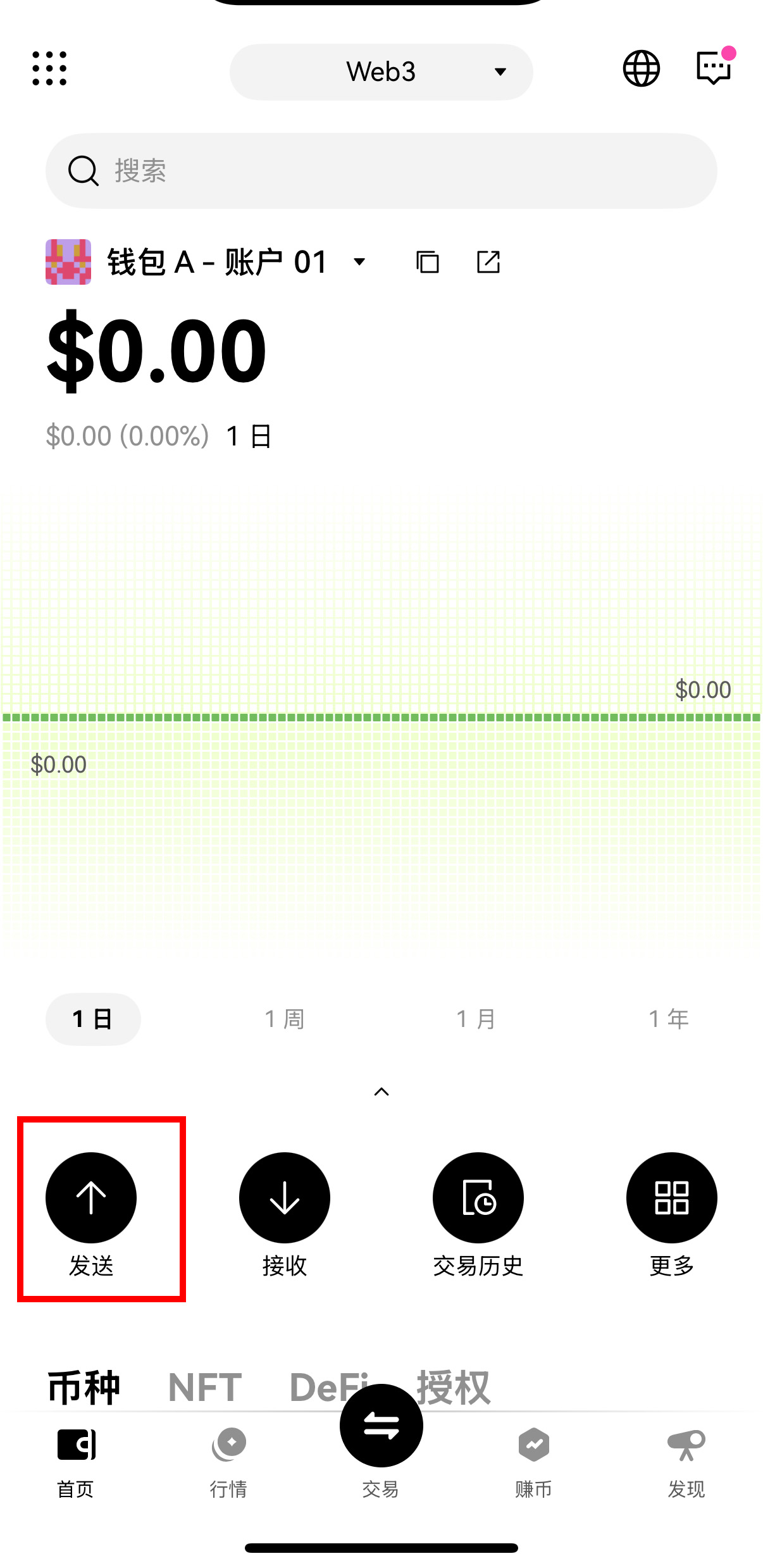 【Web3钱包】→【发送】→选择出金币种