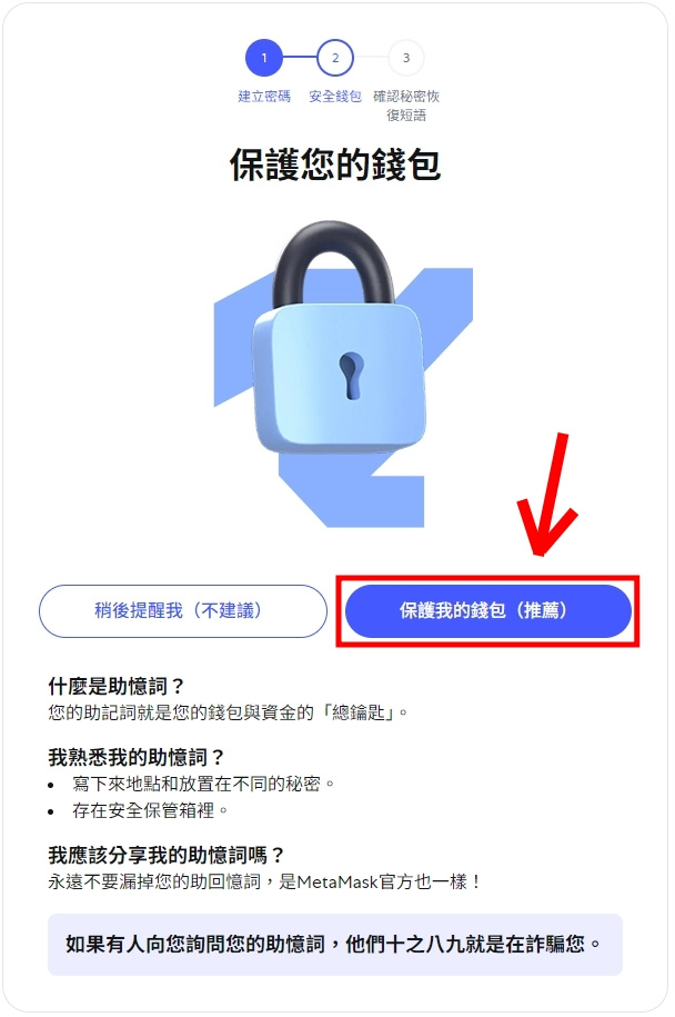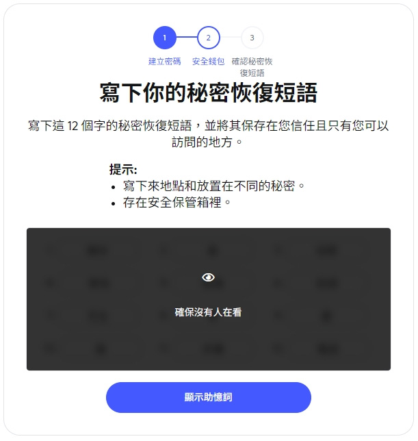 - Step 3:备份助记词(Seed Phrase)
