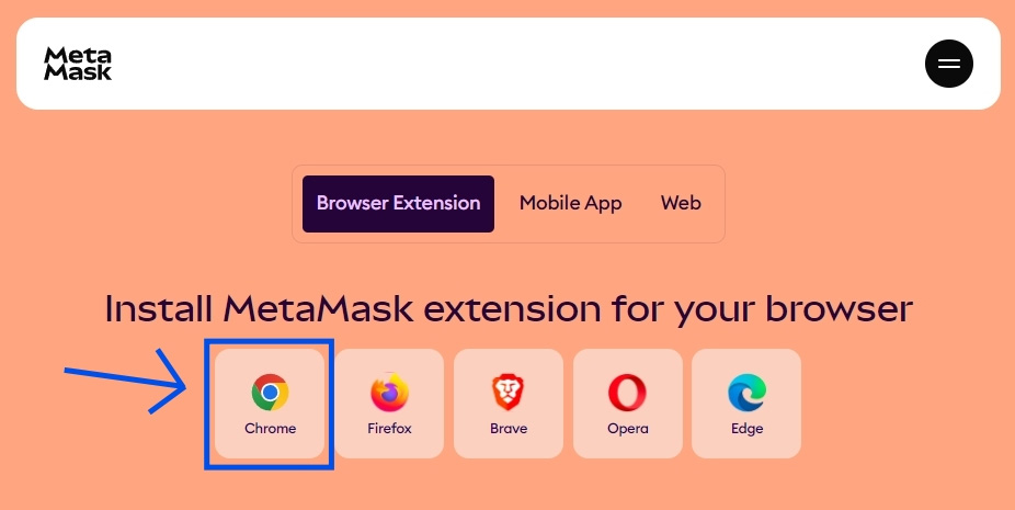 先去MetaMask官网,选择你的设备类型。