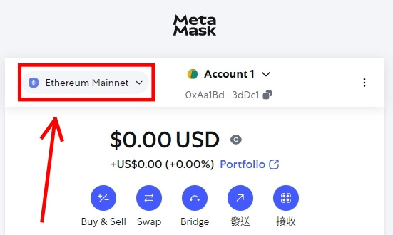 现在你已经成功进入MetaMask钱包主页,默认账户名称是Account 1。