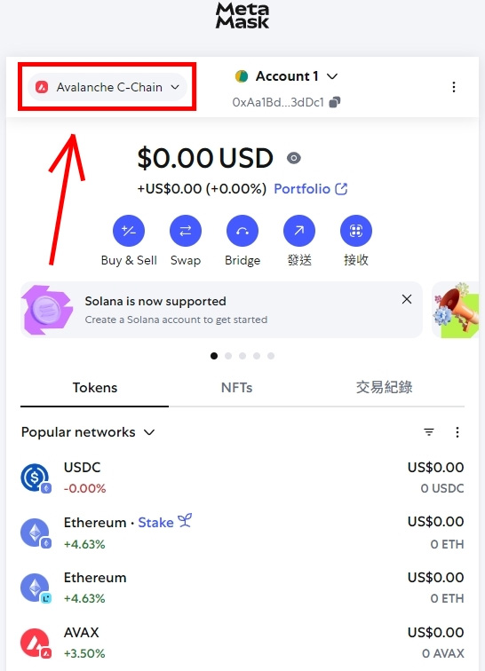 Step 3:确认已切换到AVAX网络