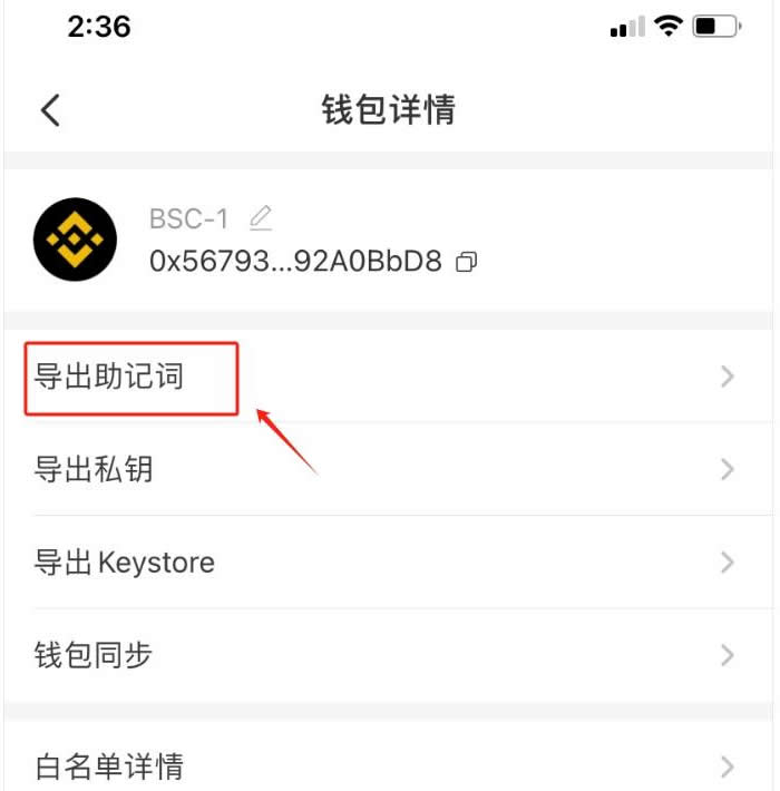 3. 进入页面后,点击"导出助记词"就可以查看。注意:导出助记词需要输入钱包密码进行身份验证
