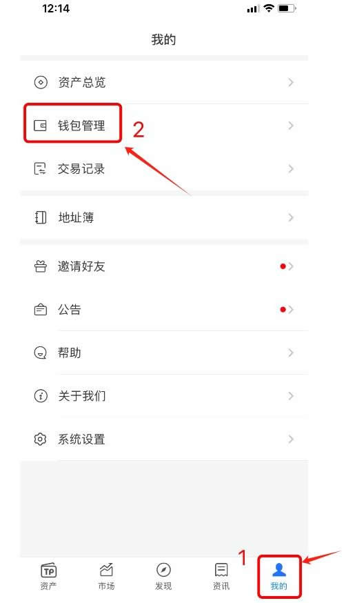 1. 打开TokenPocket应用后,点击右下角的【我的】-选择【钱包管理】