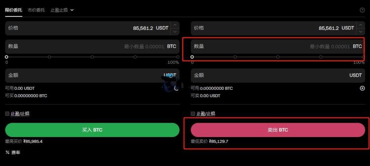 7. 输入你想卖出的BTC数量,点击卖出BTC就可以将其置换成USDT