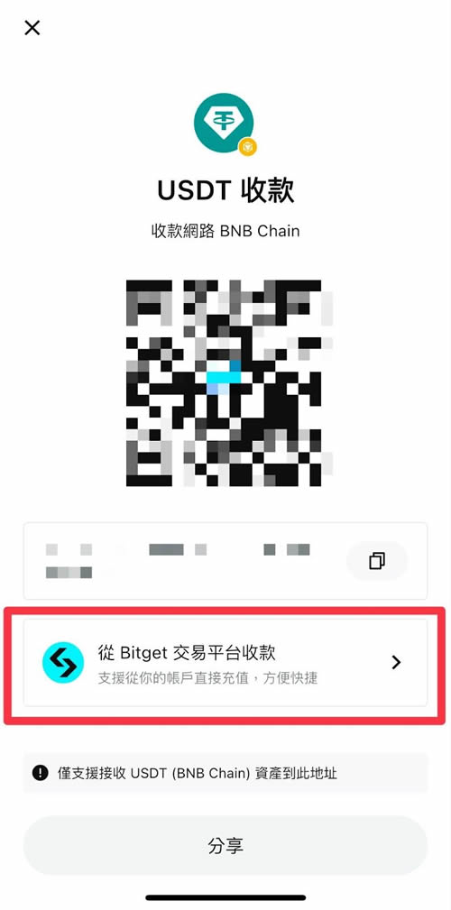 4、接着点选从 Bitget 交易平台收款,后续将会跳转到 Bitget 交易所 App,并帮你直接带入转帐地址,将资金从 Bitget 交易所转至 Bitget Wallet,等待区块链网路确认完成,你的资产就会显示在 Bitget Wallet 的余额里面了。