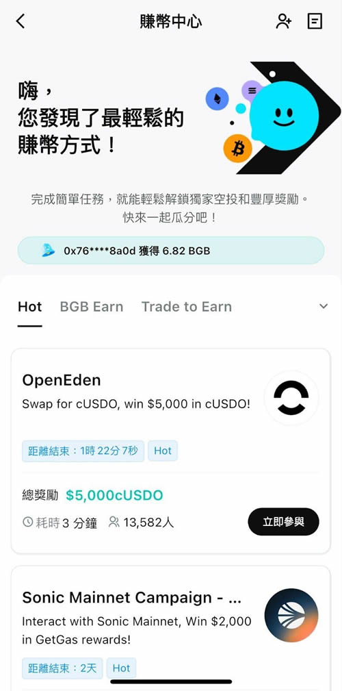 除了交易功能外,用户还可以透过Bitget Wallet 的「行情」来寻找市场热门代币、解锁新手任务获取额外奖励以及赚币中心等各种服务。