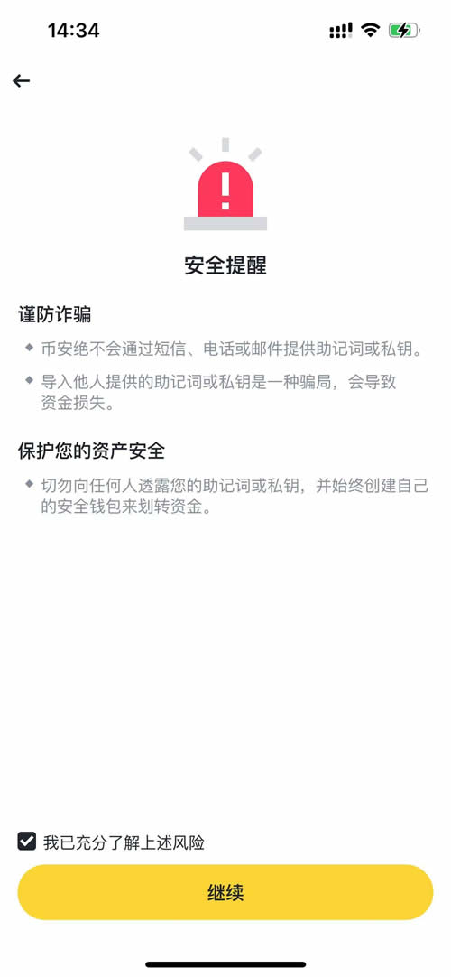 虽然币安钱包是一款自托管钱包,不要求用户完成身份认证,但请注意,该钱包内置于币安App中。因此,要创建币安钱包,你必须是已完成身份认证的币安用户并遵守币安使用条款。