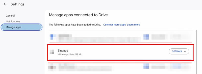 安卓设备:前往【设置】-【应用程序管理】。您的密钥分片应存储在【Google Drive】-【币安】下。