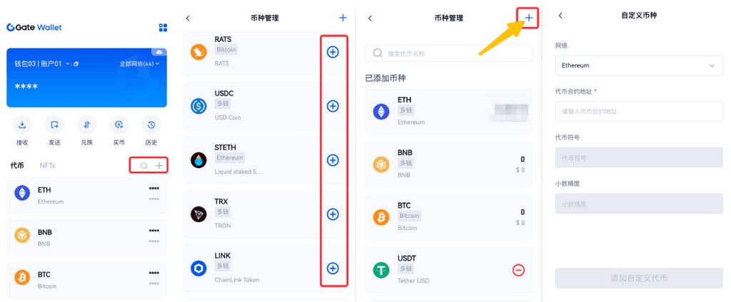 答:您可以通过搜索栏搜索代币并添加,或在"币种管理"页面添加自定义币种,输入合约地址完成添加。