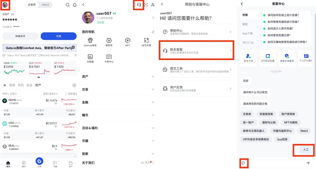 点击首页左上角头像 > 进入导航页面 > 点击右上角“耳机”图标 > 选择“联系客服” > 在下方对话框中输入并发送“人工”。