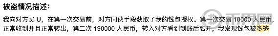 3. OTC 交易时,被有心之人拍到私钥/助记词或以某手段获取账户的授权,随后钱包被恶意多签,资产受损。