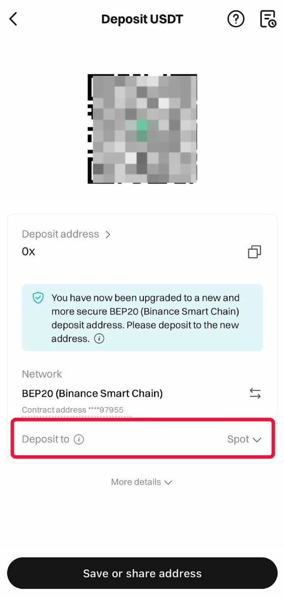完成后,你的Bitget充值地址就会以二维码和可复制文本的形式显示出来。你可以使用其中任一方式从Web3/加密货币钱包进行充值。此外,你还可以选择资金的去向,包括现货账户(用于现货交易)、资金账户(用于C2C交易)和U本位合约账户(用于U本位永续合约交易)。
