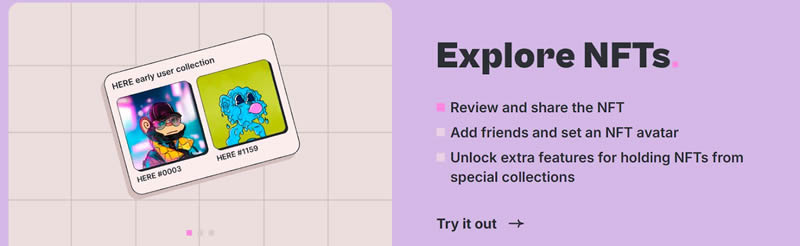 HERE Wallet的主要功能包括非阻塞质押、集成的去中心化交易所(DEX)聚合器、NFT支持、手机号码转账、免Gas费用交易以及每周空投计划。