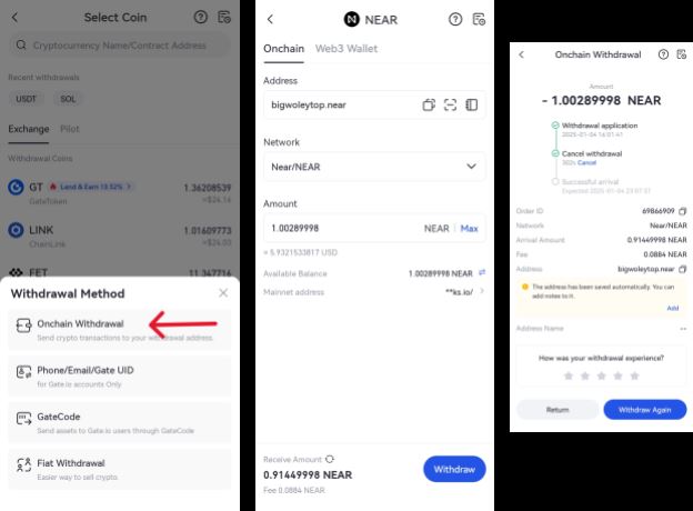 您可以通过从Gate.io加密货币交易所或外部钱包转移NEAR代币或其他支持的资产来为钱包充值。