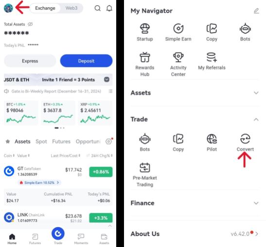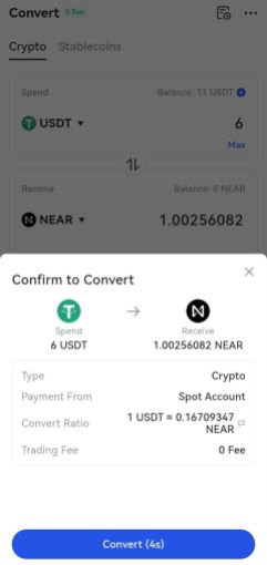 在您的Gate.io交易所(官方注册 官方下载)的应用程序中,从现货市场购买NEAR,或将您现有的资产转换为NEAR(零费用)。