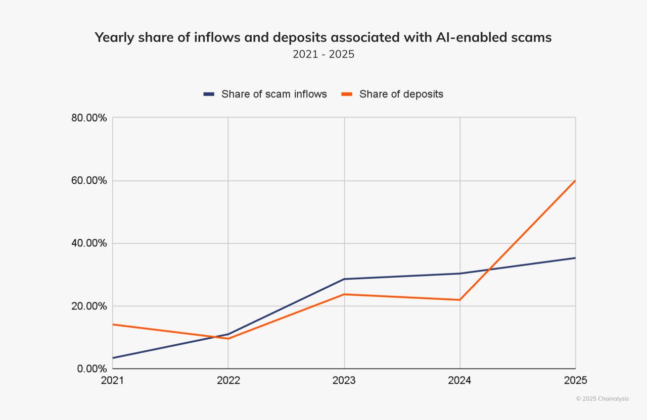 AI诈骗的资金流入和存款正在上升| 来源:Chainalysis