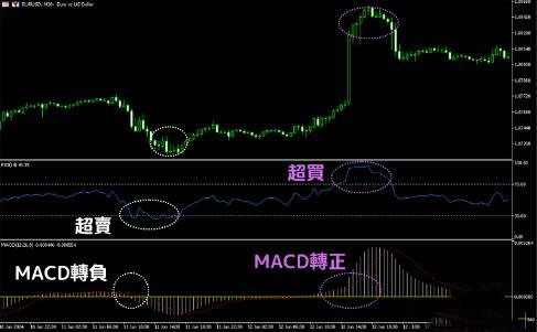 RSI可以和其他技术指标搭配使用,这样能提高交易的准确性和可靠性。以下是两种常见的RSI搭配指标: