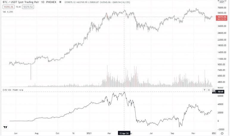 最后,没有任何单一的分析工具是绝对可靠的。CVD应该用来补充其他分析,而不是取代它们。例如,如果比特币处于强劲的上升趋势中,而CVD也在上涨,则可以作为确认。然而,如果CVD与趋势背离,则是一个警告信号,而非保证。交易者应始终考虑更广泛的背景,包括基本面、新闻和整体趋势。