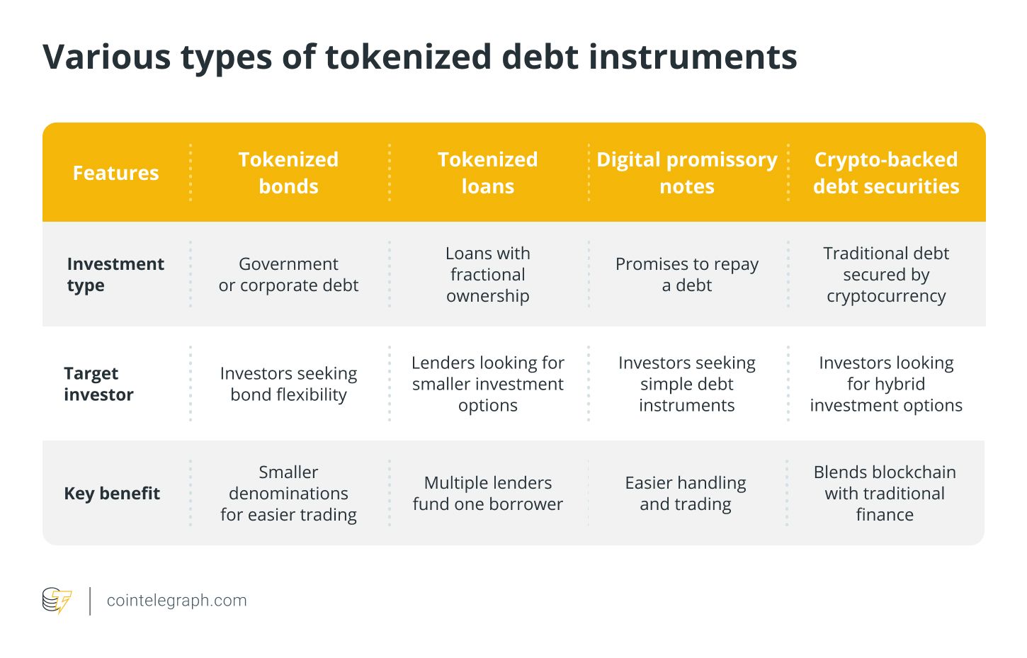 代币化债务工具是金融资产代币化趋势的一部分,包括房地产、股票和其他证券。
