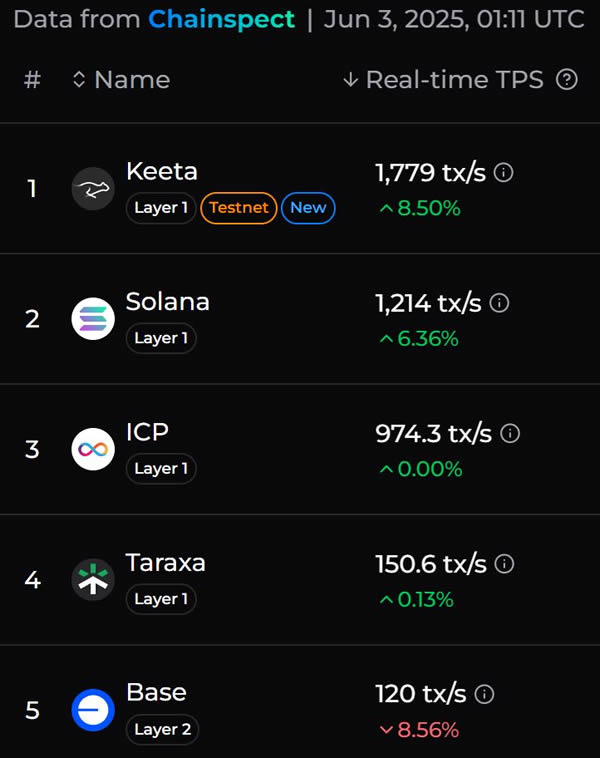 Fastest Blockchains by TPS [2025] | Chainspect