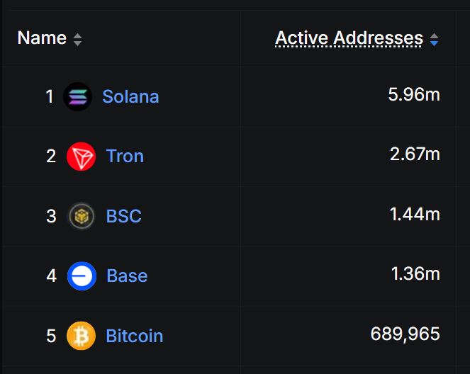 活跃地址数排名