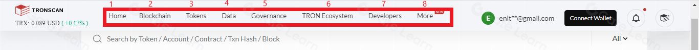 假设您要搜索钱包地址的交易详细信息。那么,请复制钱包地址并访问tronscan.org网站。您可以选择登录。但是,您也能在不登录的情况下搜索交易详细信息。