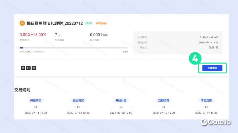 三、在产品详情页面,可以查看产品交易规则与收益规则,确认无误后,点击【立即购买】。