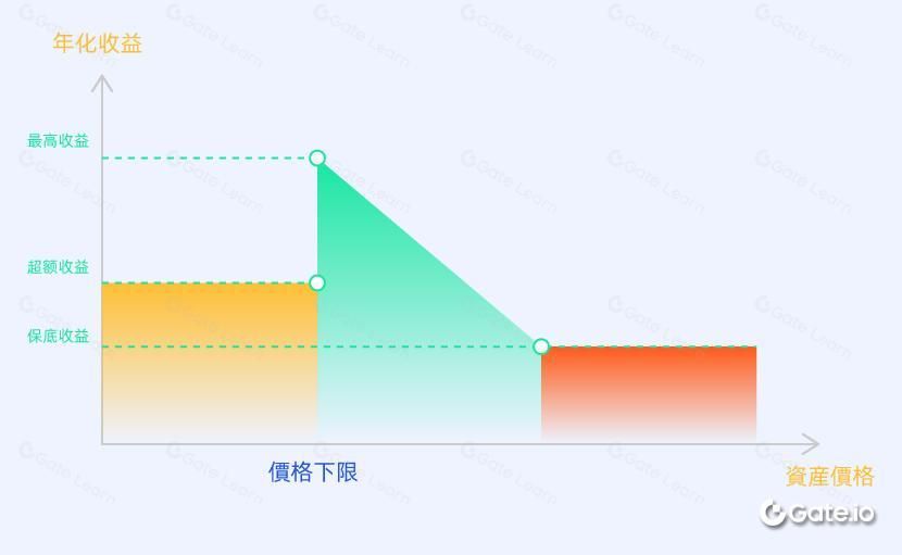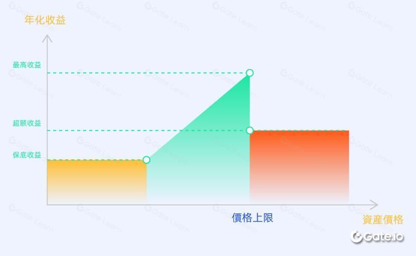 为了顾及用户对于保本理财的需求,Gate.io 已将底层复杂的资产组合及对冲优化,能在符合目前市场行情的价格范围内,提供与涨跌幅同步增加的超额收益挂钩区间,包装成不同类型的鲨鱼鳍理财产品以供用户选购。