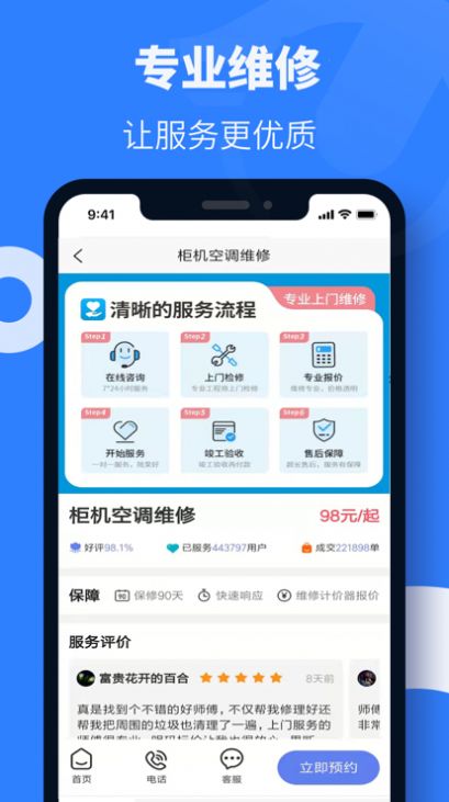 1、找空调维修安装师傅app,在线一键预约,5秒快速响应;