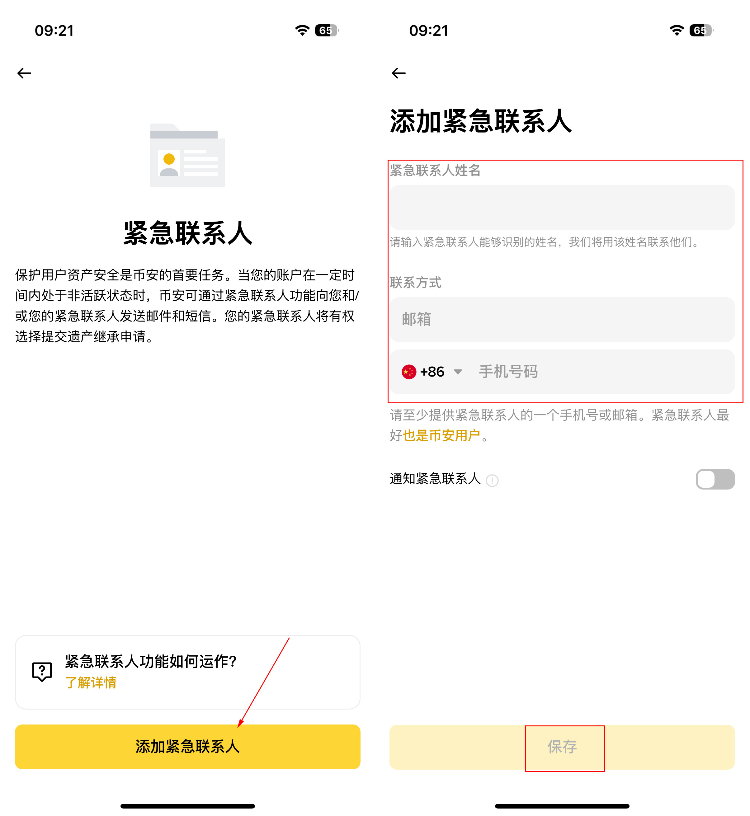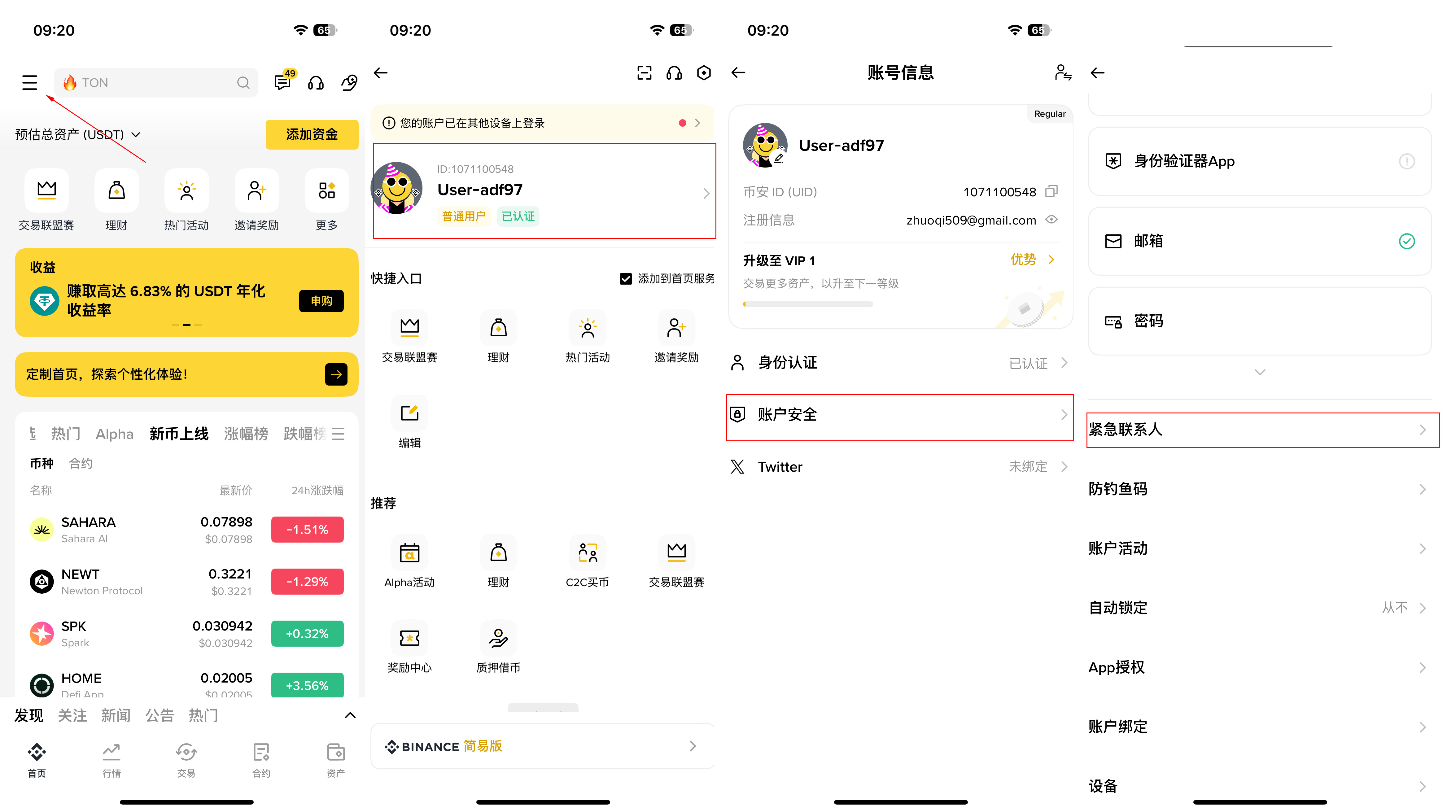 币安紧急联络人设定教学
