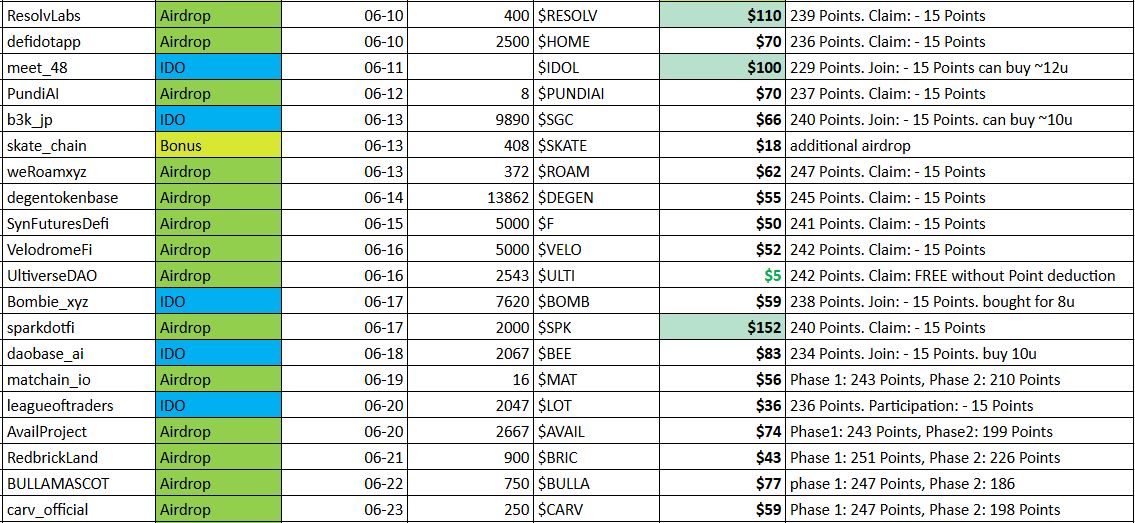 - 空投收益减少(原先收益有100U左右,近期项目约在50~70U)
