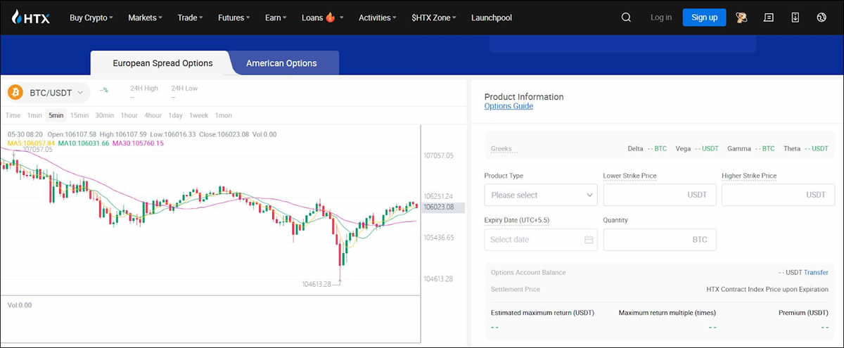 HTX简化了期权交易流程,特别适合新手。其平价期权的执行价格等于资产的当前价格,省去了复杂的定价环节。HTX提供美式独立期权、欧式期权价差和场外期权。美式期权允许自定义执行价格,并可在到期前随时行使,提供极大灵活性。欧式价差结构更为规范,而场外期权则适合机构等专业用户进行自定义对冲或杠杆操作。
